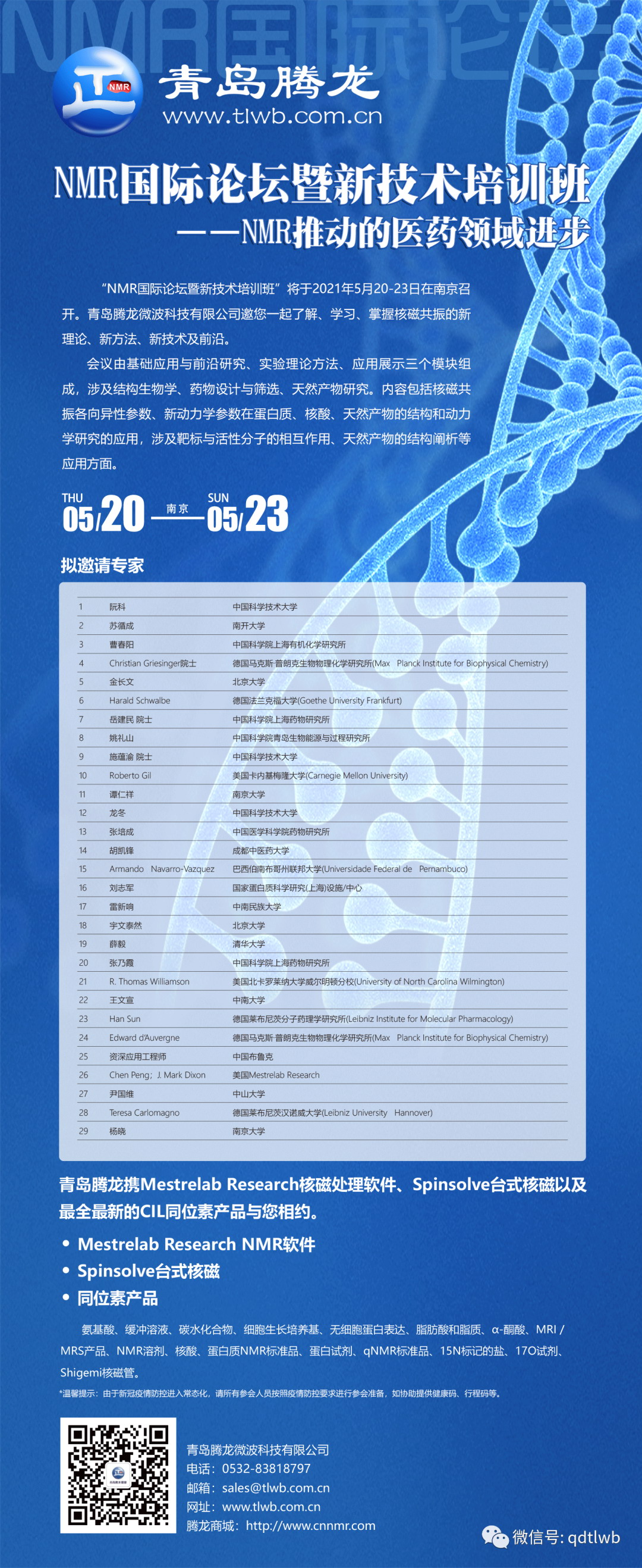 青島騰龍攜最全最新的CIL同位素產(chǎn)品、Spinsolve臺(tái)式核磁以及核磁處理軟件5.20-5.23號(hào)在南京與您相約