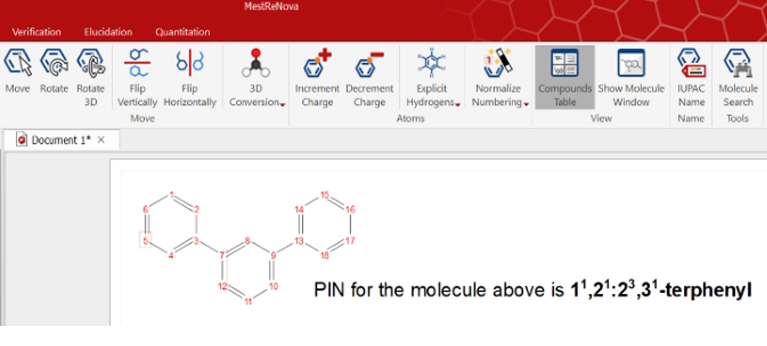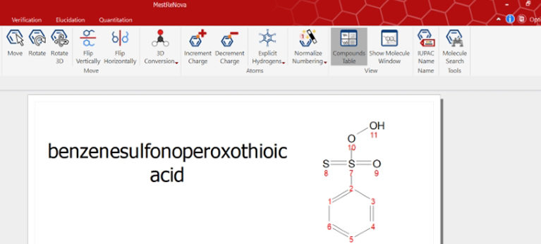This tool takes advantage of the enhancements within the new molecular editor. You can now generate the IUPAC name for any molecular structure included in your Mnova document…