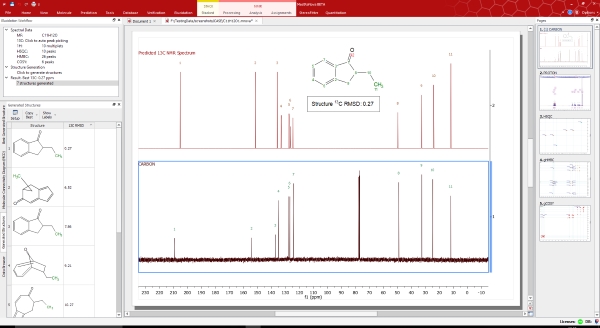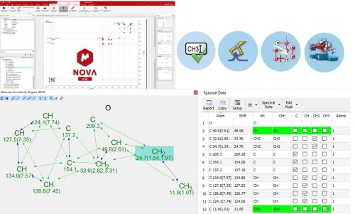 ? Intuitive and easy to use software program with a well defined steps workflow ? High quality processing, analysis and presentation of spectra (deconvolution, peak picking, integration, multiplet analysis, etc.) running Mnova powerful engine in the background. ? Facilitates the inference of the molecular structures on the screen, instead of on the paper. It speeds up the elucidation workflow. ? Makes structure elucidation available to non-experts users. ? Combines latest advances in 1D and 2D NMR peak picking strategies (GSD deconvolution, filtering, smoothing). ? New approaches to constraint generation and handling. |
