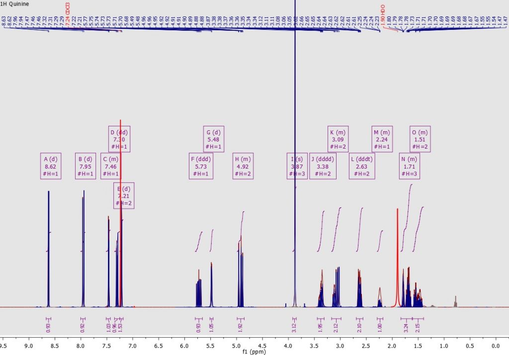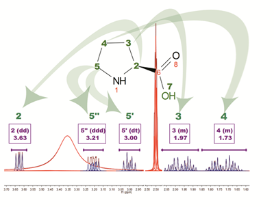 The automated spectral analysis algorithmia in Mnova NMR performs analysis in the way a chemist would. The aim to automatically classify every peak, according to fuzzy logic analysis of different descriptors, into categories ranging from peak compound, impurities, 13 C satellites, solvent, etc.