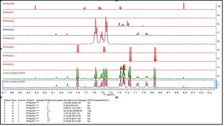 Pattern recognition algorithms map your experimental data. Considers the use of STD, wLOGSY, T1rho, CMPG experiments. Uses deconvolution to effectively pick peak even weak signals. Result viewer to quickly inspect your hits. Export metrics of your analysis into your favorite statistical package. |