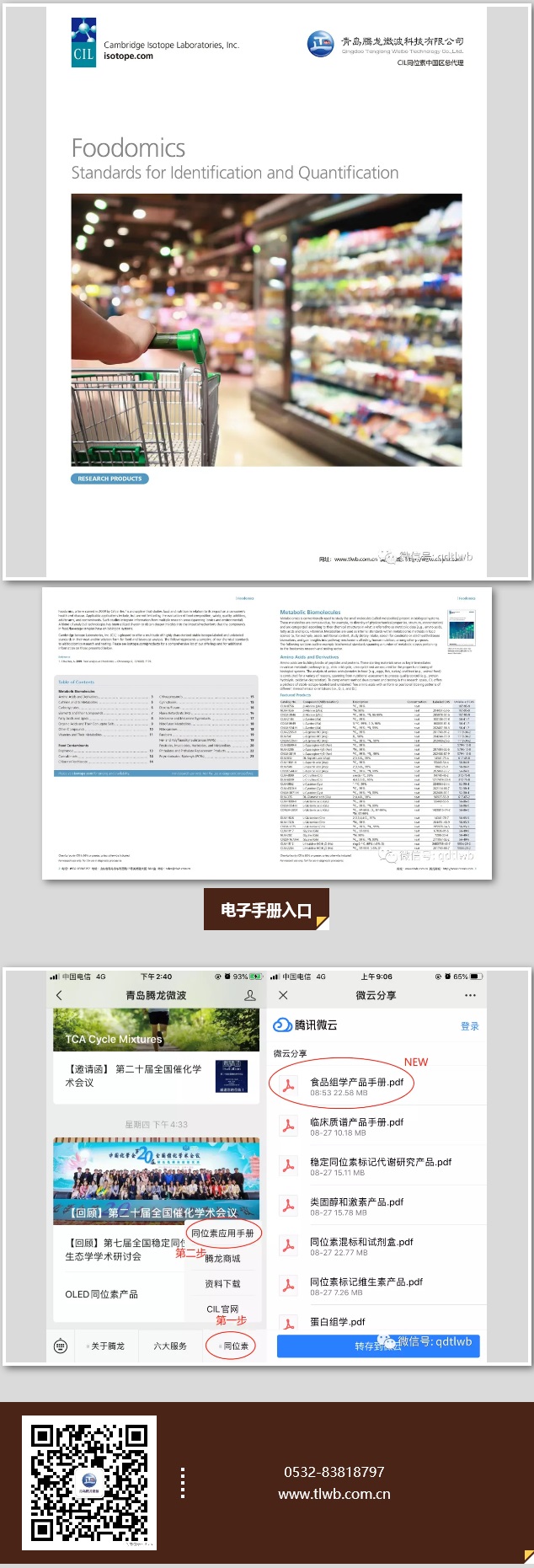 食品組學(xué)是研究食品和營養(yǎng)對(duì)消費(fèi)者健康和疾病影響的綜合和多學(xué)科方法。不限于食品成分、安全、質(zhì)量、添加劑、摻假和污染物。CIL提供穩(wěn)定同位素標(biāo)記和地標(biāo)標(biāo)準(zhǔn)品,用于分析代謝生物分子和食品污染物在食品學(xué)研究。