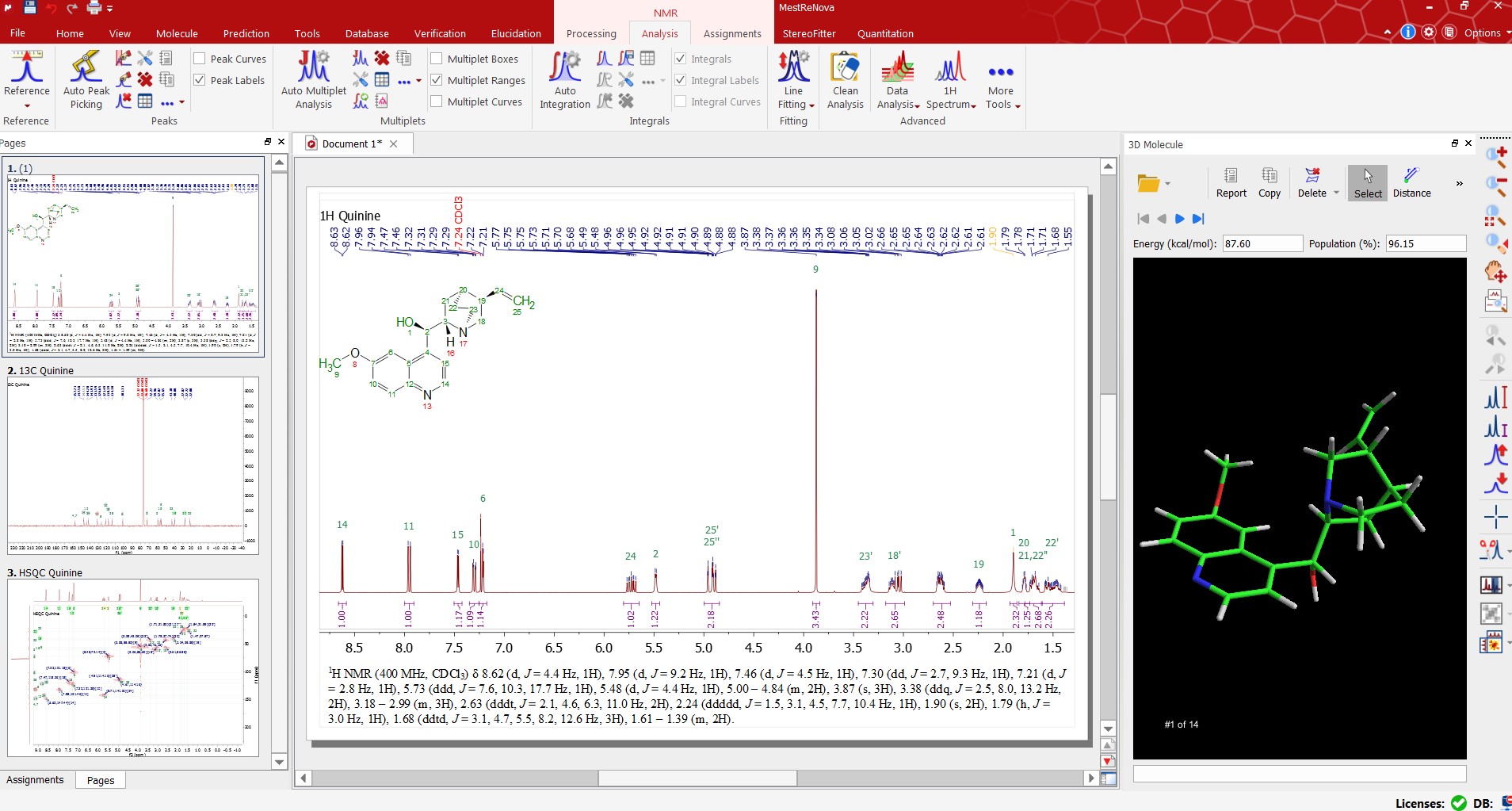 Mnova NMR and NMRPredict Desktop can be combined to fully automatically assign 1D and 2D NMR peaks and multiplets to atoms on a molecular structure and, therefore, give the user greater structure understanding.