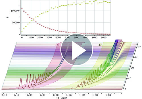 Mnova incorporates a ‘Data Analysis’ feature for the analysis of an array of 1D NMR experiments. It has the ability to handle multiple series, for example it’s possible to analyse the decay of several resonances within the same experiment, or a series of peak shifts during a titration.