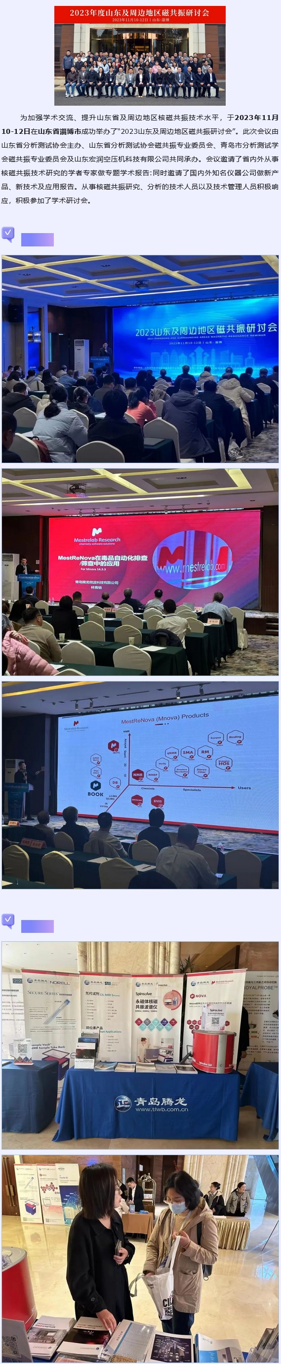 為加強學術交流、提升山東省及周邊地區(qū)核磁共振技術水平,于2023年11月10-12日在山東省淄博市成功舉辦了“2023山東及周邊地區(qū)磁共振研討會”。此次會議由山東省分析測試協(xié)會主辦、山東省分析測試協(xié)會磁共振專業(yè)委員會、青島市分析測試學會磁共振專業(yè)委員會及山東宏潤空壓機科技有限公司共同承辦。會議邀請了省內外從事核磁共振技術研究的學者專家做專題學術報告:同時邀請了國內外知名儀器公司做新產(chǎn)品、新技術及應用報告。從事核磁共振研究、分析的技術人員以及技術管理人員積極響應,積極參加了學術研討會。